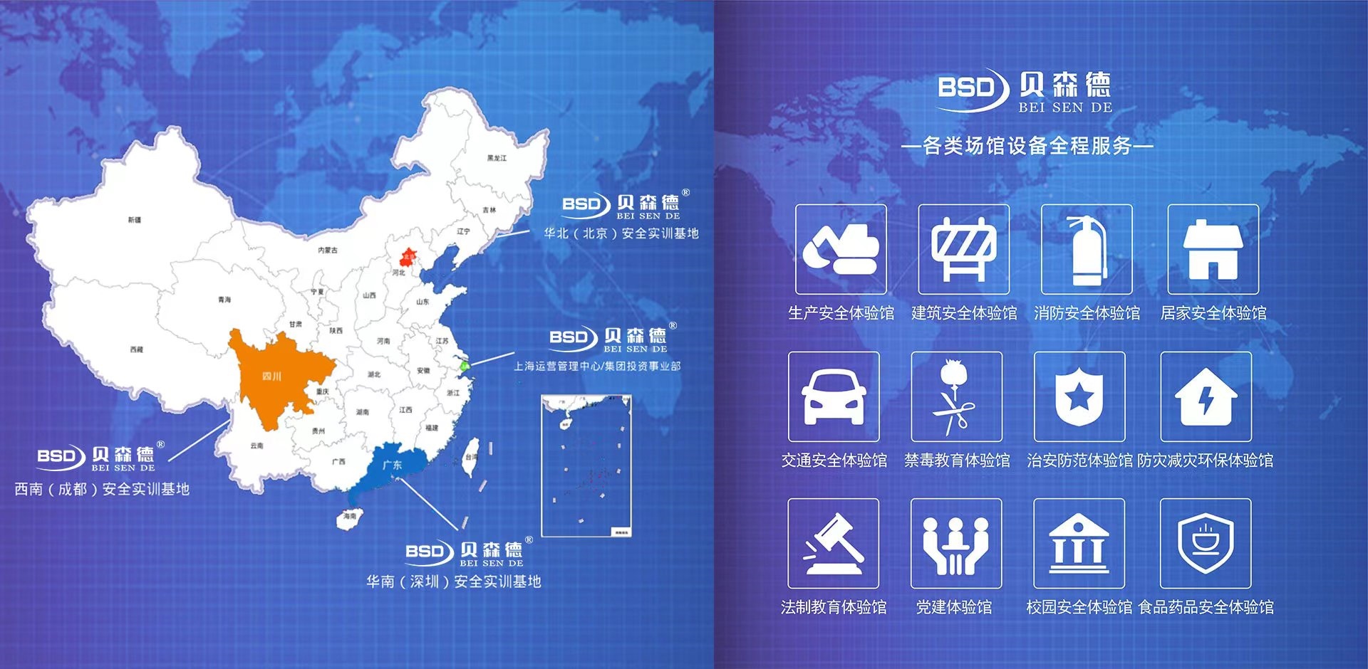 貝森德旗下有:貝森德、貝創(chuàng)科技、瓦令科技等品牌,主營業(yè)務由:體驗式教育服務、綠色環(huán)保服務等構成。 提供各類場館設備全程服務:消防體驗館、消防安全體驗館、生產(chǎn)安全體驗館、建筑安全體驗館、居家安全體驗館、交通安全體驗館、工地安全體驗館、VR安全體驗館、校園安全體驗館、食品藥品安全體驗館、安全教育體驗館、禁毒體驗館、禁毒教育體驗館、治安防范體驗館、防災減災體驗館、法制教育體驗館、黨建體驗館、模擬滅火體驗、安全體驗教室等。業(yè)務覆蓋全國,主要覆蓋上海、北京、深圳、四川成都、浙江、江蘇、云南等地。